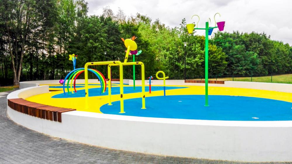 Wodny plac zabaw posiada dwie strefy: dla młodszych i starszych dzieci. Przygotowano tam kolorowe urządzenia z dyszami, tryskaczami i fontannami. Znajdziecie m.in.: armatkę wodną, kwiatki nabierające wodę, wodne owady i gejzer ziemny. Całość ograniczona jest murkiem, na którym zainstalowano ławki do siedzenia. W sumie zainstalowanych jest 18 zabawek wodnych, sześć pomp i dwa filtry. Wszystko to sprawia, że jest to idealne miejsce aby uciec od miejskich upałów i podarować dzieciom chwile beztroskiej zabawy.