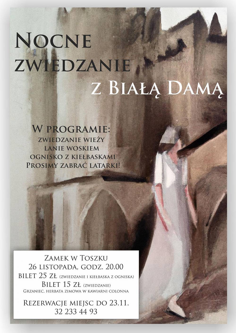 26 listopada zapraszamy na nocne zwiedzanie zamku w Toszku. W programie m.in. zwiedzanie wieży, ognisko z kiełbaskami. Początek imprezy o godz. 20:00. Prosimy zabrać latarki!